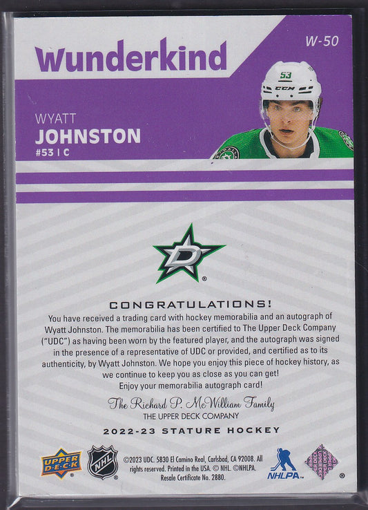 WYATT JOHNSTON - 2022 Upper Deck Stature Wunderkind Rookie Auto Patch #W-50, 1/1