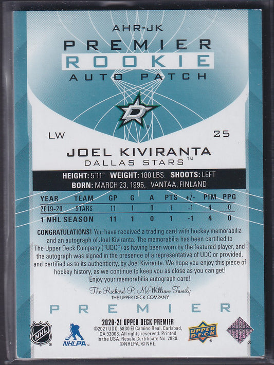 JOEL KIVIRANTA - 2020 Upper Deck Premier Rookie Auto Patch #AHR-JK, 1/1