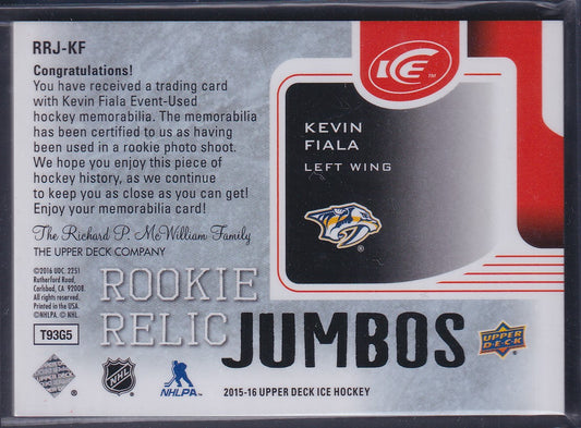 KEVIN FIALA - 2015 Upper Deck Ice Rookie Relic Jumbos Patch #RRJ-KF, /15