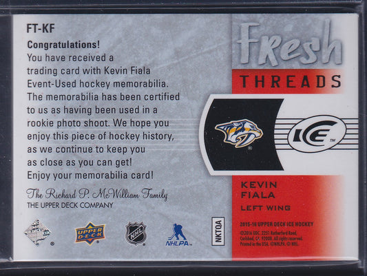 KEVIN FIALA - 2015 Upper Deck Ice Fresh Threads Jersey Patch #FT-KF, /49