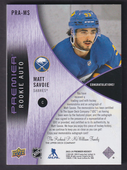 MATT SAVOIE - 2023 Upper Deck Premier Rookie Auto Quad Tag #PRA-MS, 1/1