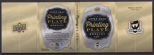 MATTIAS JANMARK, 2018 Upper Deck PRINTING PLATE BOOKLET #309, 1/1