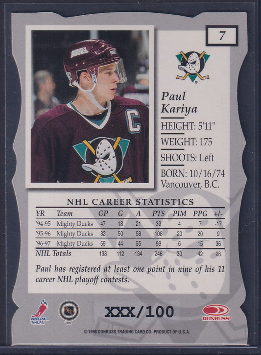 PAUL KARIYA - 1997 Donruss Elite Status Die Cut #7, xxx/100
