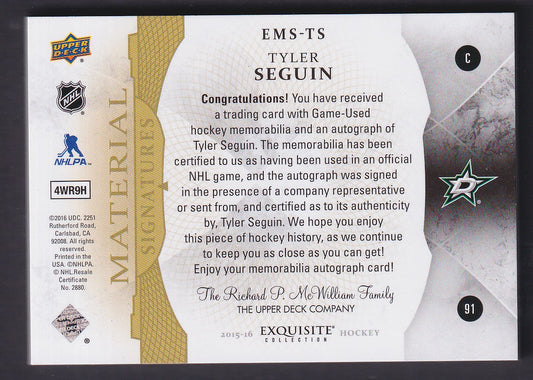 TYLER SEGUIN - 2015 Upper Deck Exquisite Material Signatures Auto #EMS-TS, /99