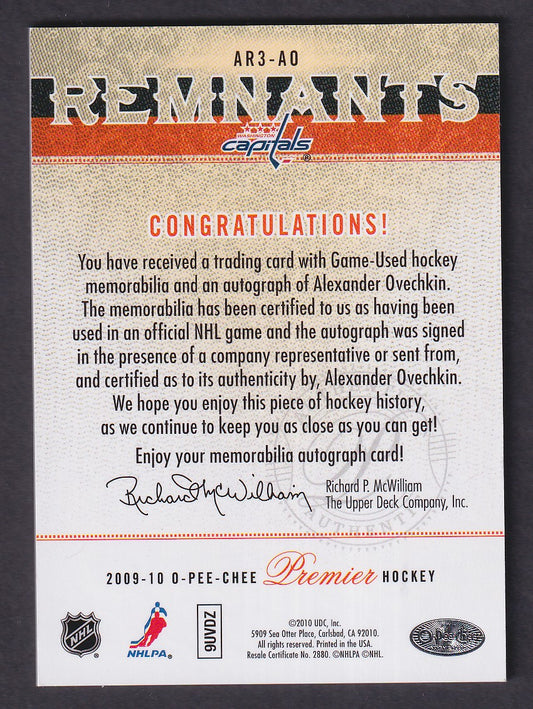 ALEXANDER OVECHKIN - 2009 O-Pee-Chee Premier Remnants Auto Patch #AR3-AO, /25