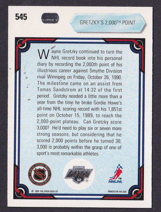 WAYNE GRETZKY - 1990 Upper Deck 2000 Points Auto #545, /2000
