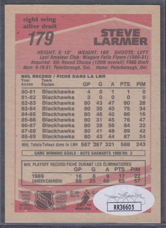 STEVE LARMER, 1989 O-Pee-Chee #179, Auto, Certified Genuine
