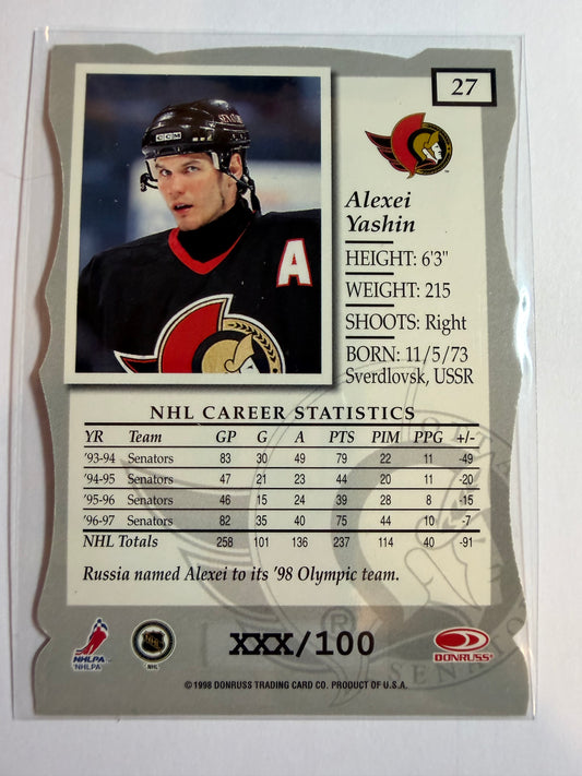 ALEXEI YASHIN - 1997 Donruss Elite Status Die Cut #27, xxx/100