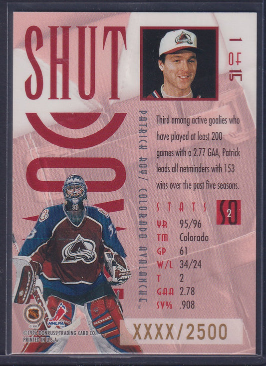 PATRICK ROY - 1996 Donruss Leaf Shut Down #1, xxxx/2500