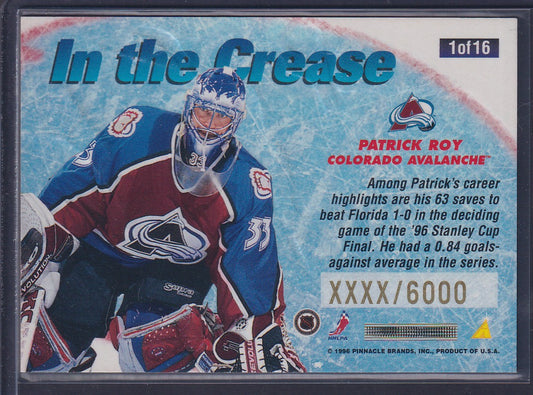 PATRICK ROY - 1996 Pinnacle Summit In the Crease #1, xxxx/6000