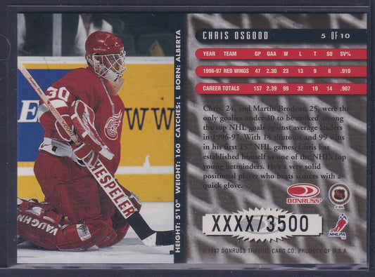 CHRIS OSGOOD - 1997 Donruss Between the Pipes #5, xxxx/3500