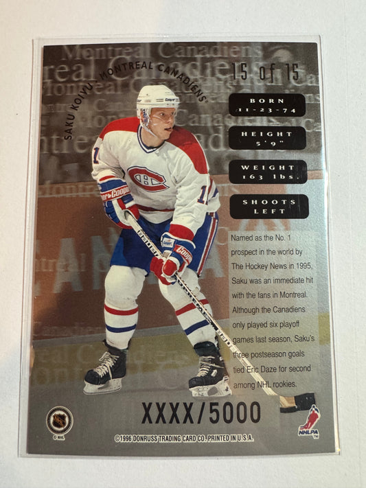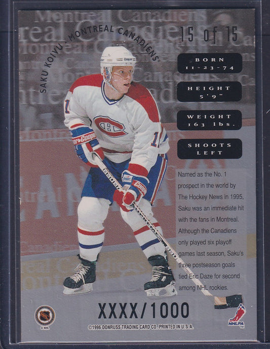 SAKU KOIVU - 1996 Donruss Leaf Banner Season Die Cut #15, xxxx/3500
