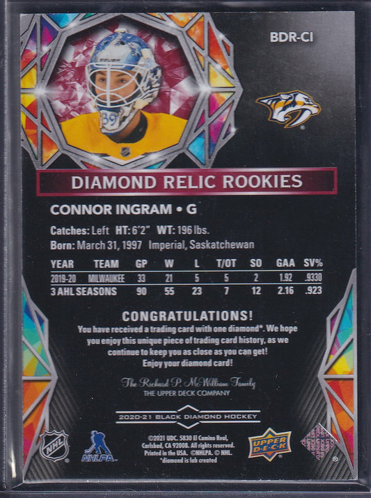 CONNOR INGRAM - 2020 Upper Deck Black Diamond Relic Rookies #BDR-CI, /49