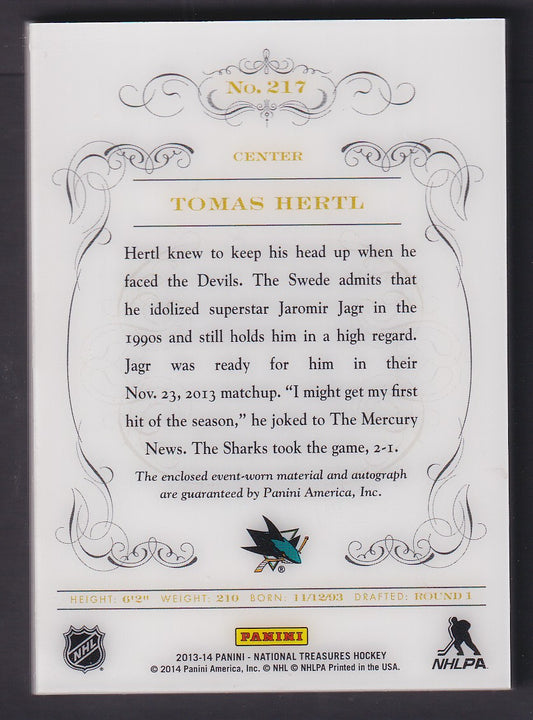 TOMAS HERTL - 2013 Panini National Treasures Rookie Auto Patch #217, /43