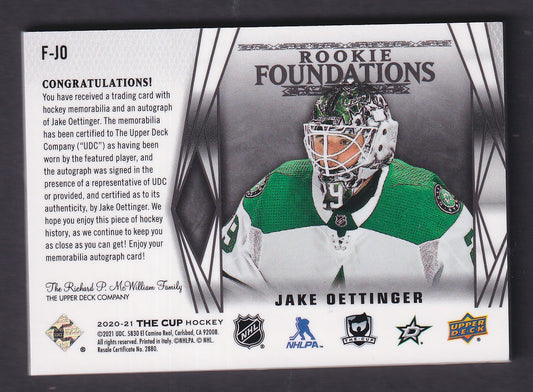 JAKE OETTINGER - 2020 The Cup Rookie Foundations Quad Patch Auto #F-JO, 1/1