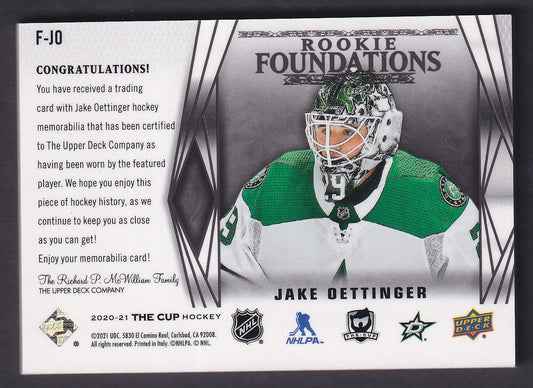 JAKE OETTINGER - 2020 The Cup Rookie Foundations Quad Patch #F-JO, /2
