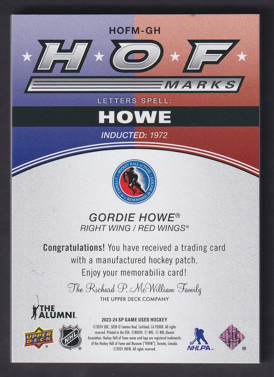 GORDIE HOWE - 2023 SP Game Used HOF Marks O #HOFM-GH, /35