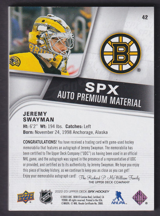 JEREMY SWAYMAN - 2022 Upper Deck SPx Auto with Sick Patch #42, 1/1