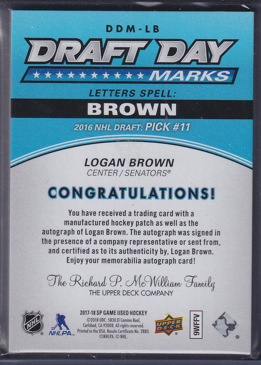 LOGAN BROWN - 2017 SP Game Used Draft Day Marks R Auto #DDM-LB, /35Regular price $43.00 CADRegular priceUnit price per-