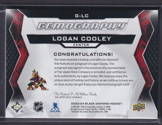 LOGAN COOLEY - 2023 Upper Deck Black Diamond Gemography Auto #G-CL, /15Regular price $412.00 CADRegular priceUnit price per-