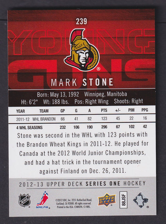MARK STONE - 2012 Upper Deck Young Guns EXCLUSIVES #239, /100Regular price $107.00 CADRegular priceUnit price per-