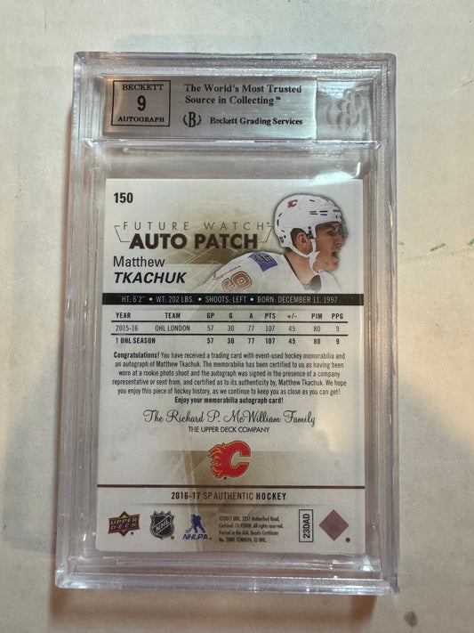 MATTHEW TKACHUK - 2016 SP Authentic Future Watch Auto Patch #150, /100, BGS 9/9