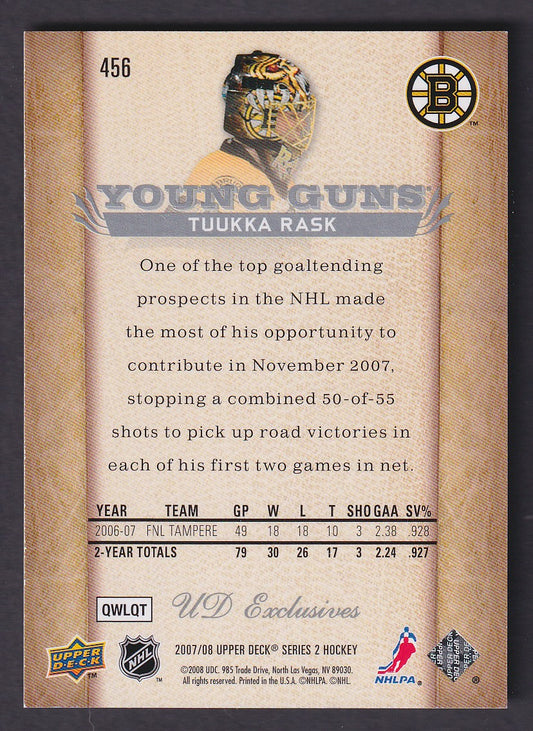 TUUKKA RASK - 2007 Upper Deck Young Guns EXCLUSIVES #456, /100