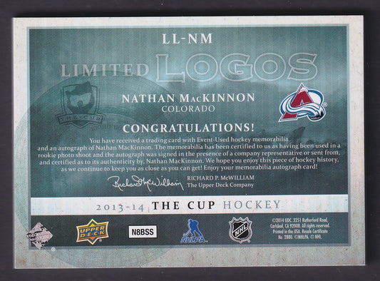 NATHAN MACKINNON - 2013 The Cup Limited Logos Rookie Auto Patch #LL-NM, /50