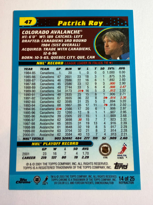 PATRICK ROY - 2002 Topps Chrome #47 Reprints Refractor #14 of 25