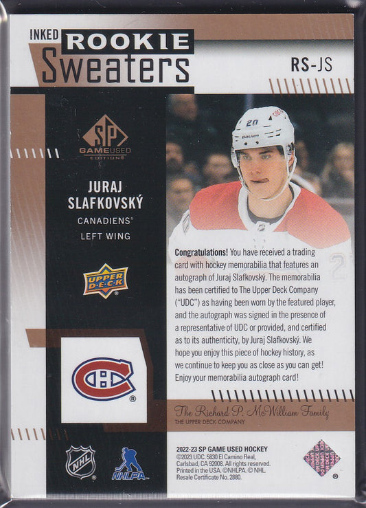 JURAJ SLAFKOVSKY - 2022 SP Game Used Inked Rookie Sweaters Auto Patch #RS-JS /25