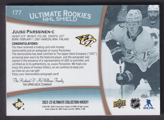 JUUSO PARSSINEN - 2022 Ultimate Rookies Auto Shield #177, 1/1