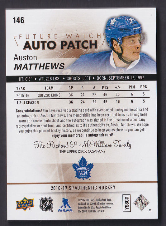 AUSTON MATTHEWS - 2016 SP Authentic Future Watch Auto Patch #146, /100