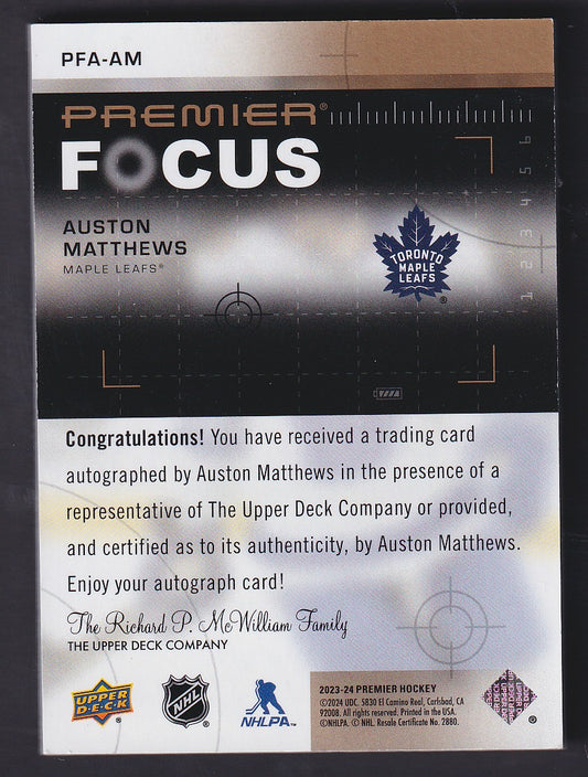 AUSTON MATTHEWS - 2023 Upper Deck Premier Focus Auto #PFA-AM, /15
