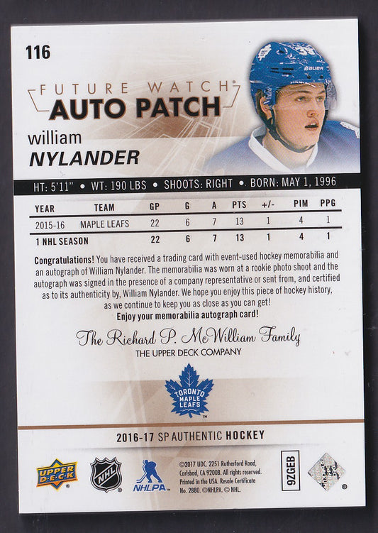 WILLIAM NYLANDER - 2016 SP Authentic Future Watch Auto Patch #116, /100