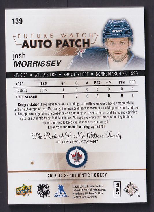 JOSH MORRISSEY - 2016 SP Authentic Future Watch Auto Patch #139, /100