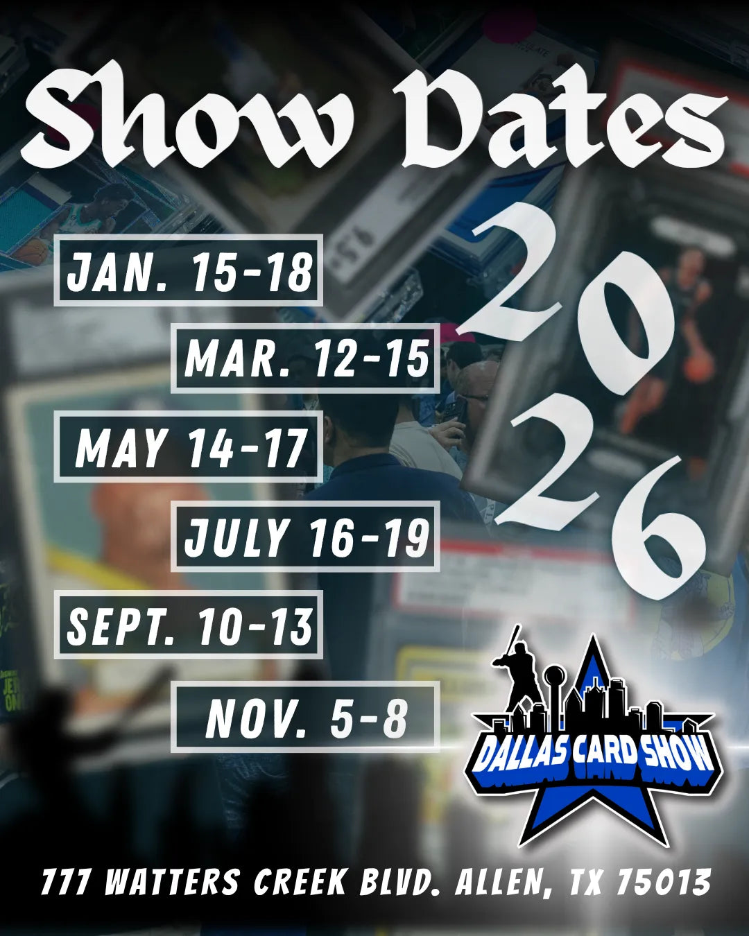 I generally try to make each Dallas Card Show. Here are a list of upcoming dates for 2026: