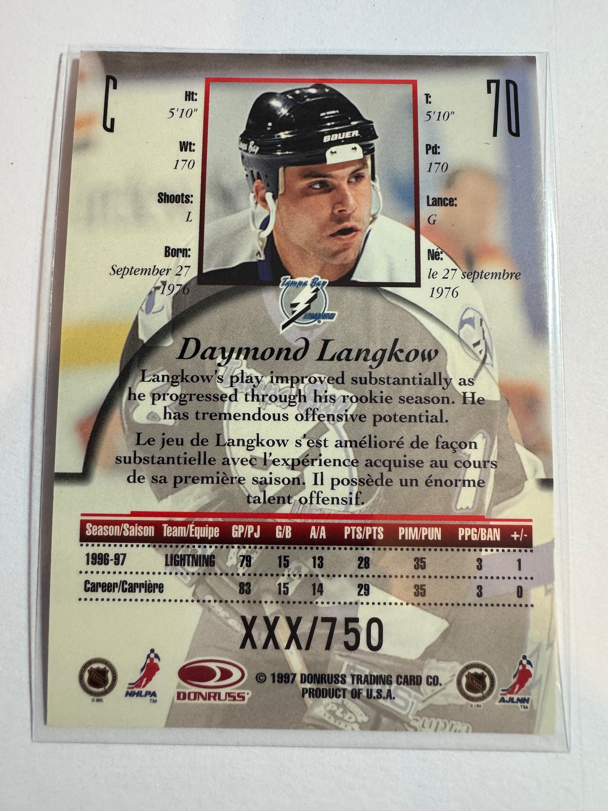 DAYMOND LANGKOW - 1997 Donruss Canadian Ice Provincial Series #70, xxx/750