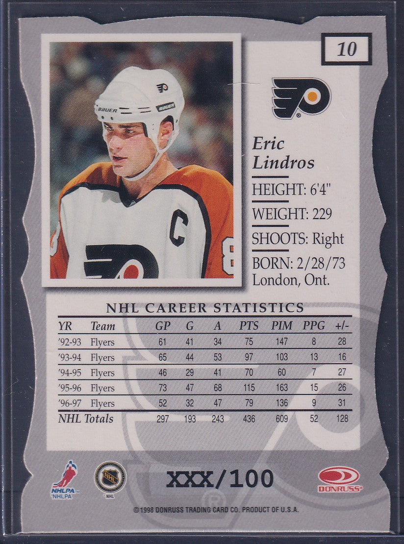 ERIC LINDROS - 1997 Donruss Elite Status Die Cut #10, xxx/100