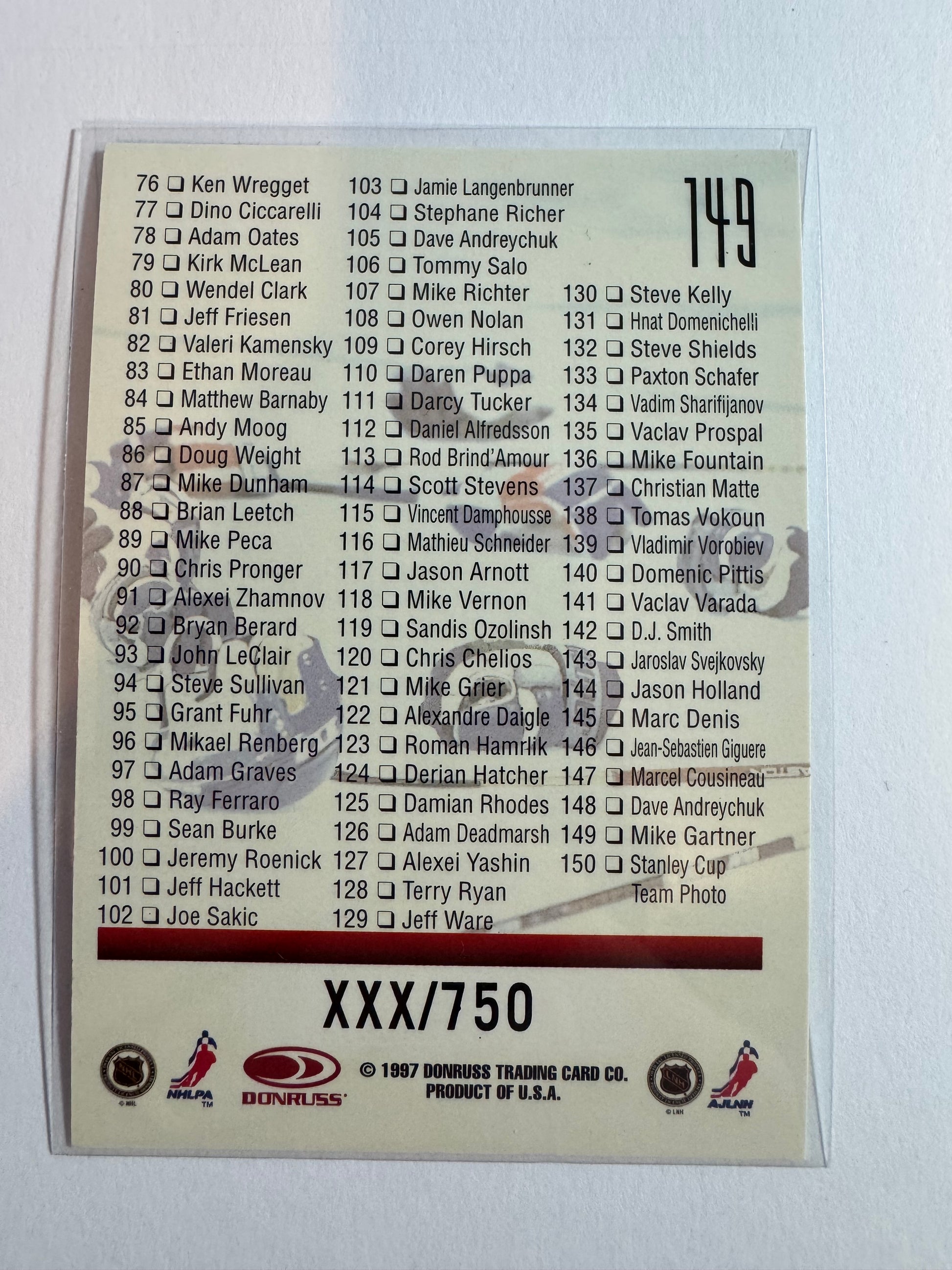 MIKE GARTNER - 1997 Donruss Canadian Ice Provincial Series Checklist #149, xxx/750