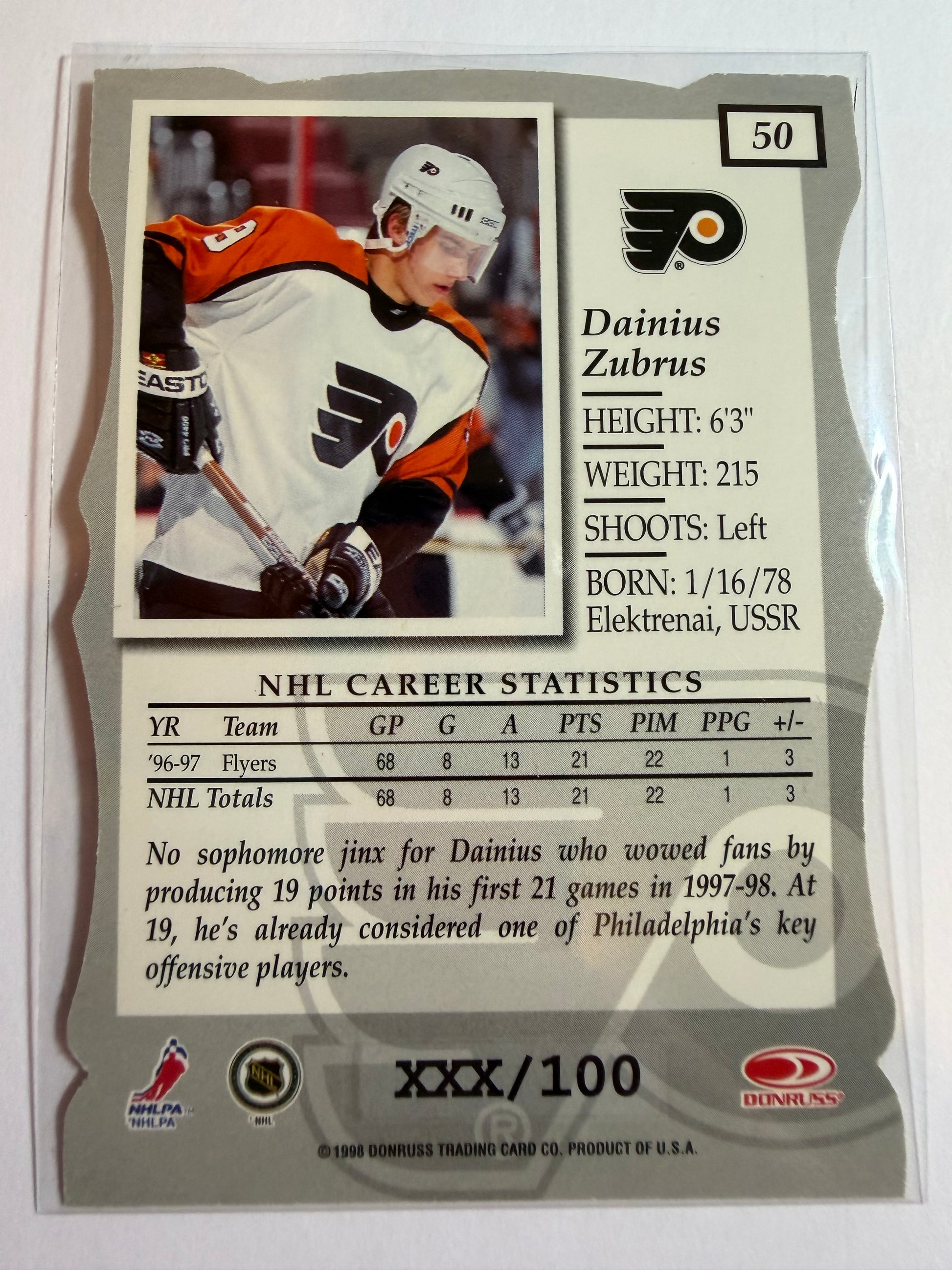 DAINIUS ZUBRUS - 1997 Donruss Elite Status Die Cut #50, xxx/100