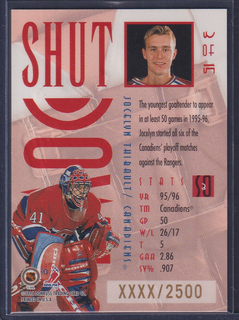 JOCELYN THIBAULT - 1996 Donruss Leaf Shut Down #3, xxxx/2500