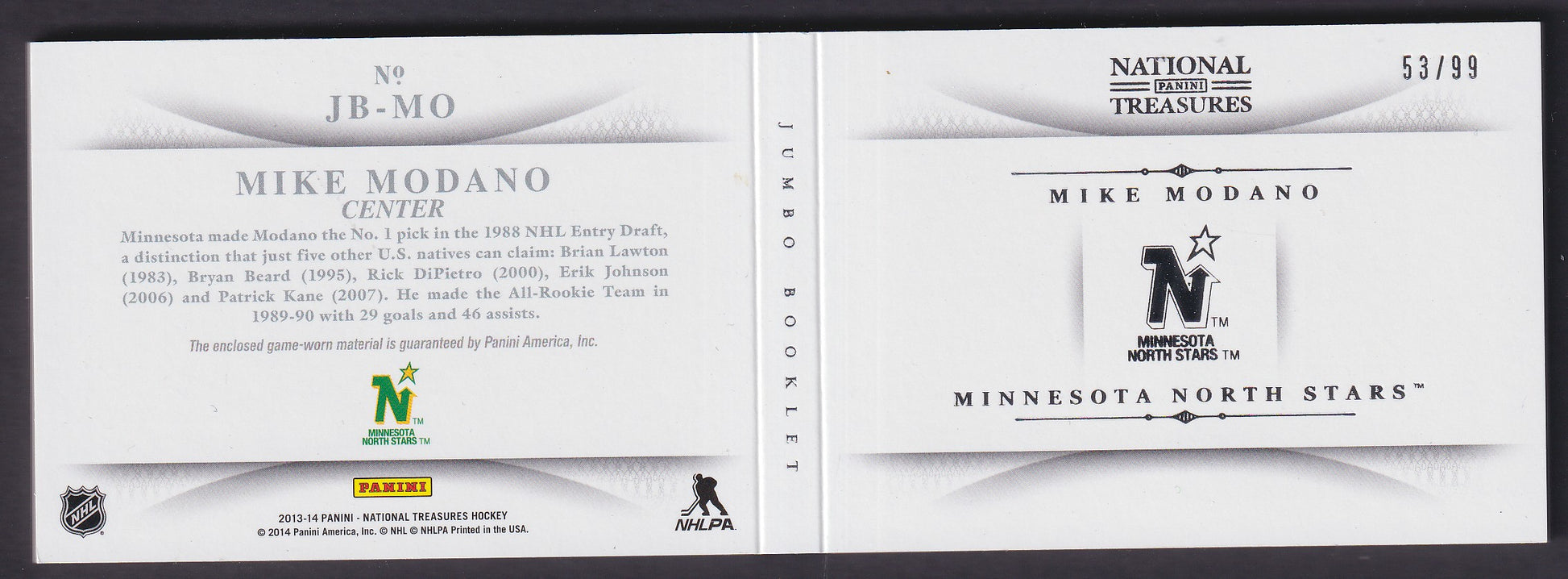 MIKE MODANO - 2013 Panini National Treasures Jumbo Patch Booklet #JB-MO, /99