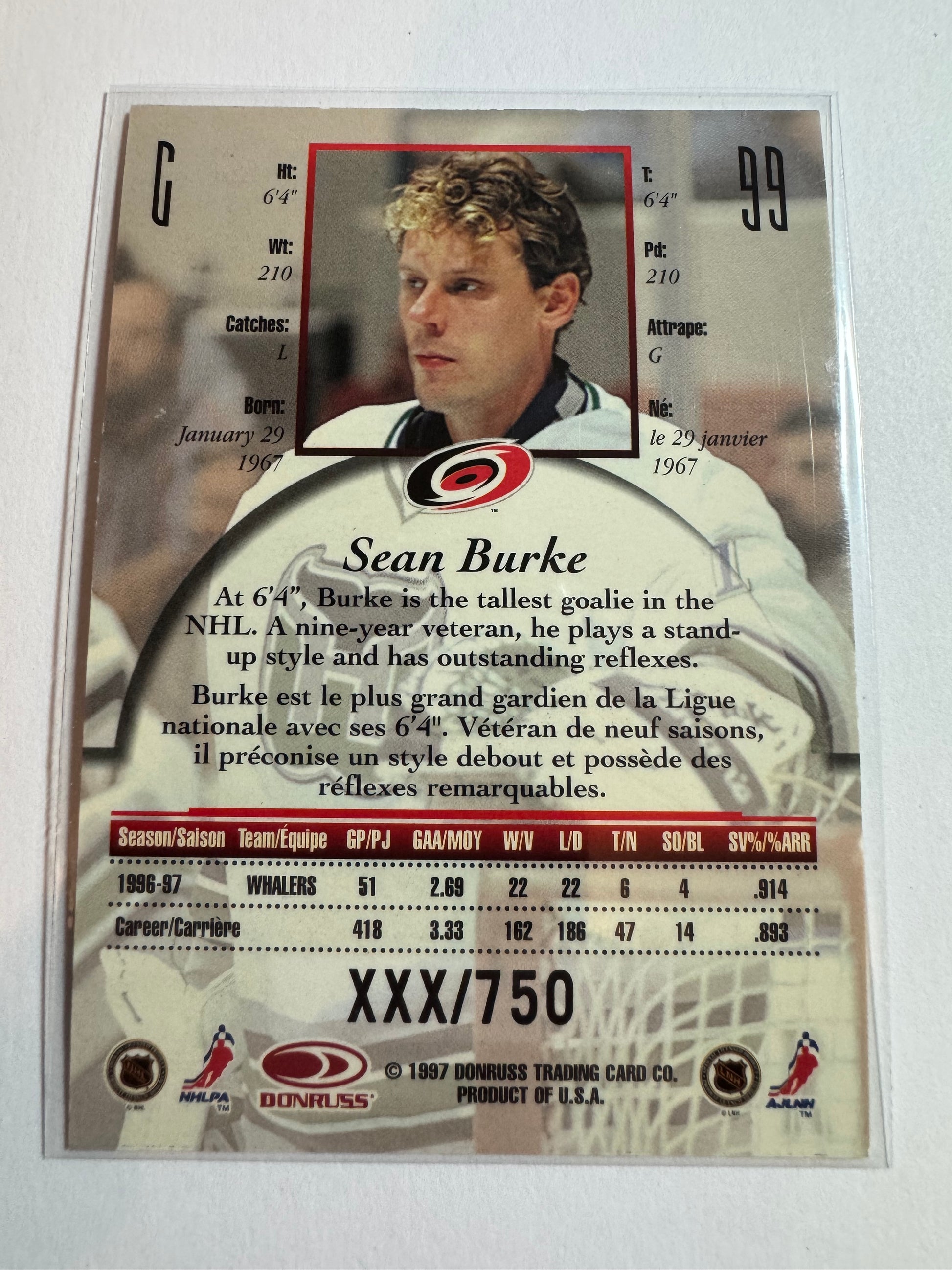 SEAN BURKE - 1997 Donruss Canadian Ice Provincial Series #99, xxx/750